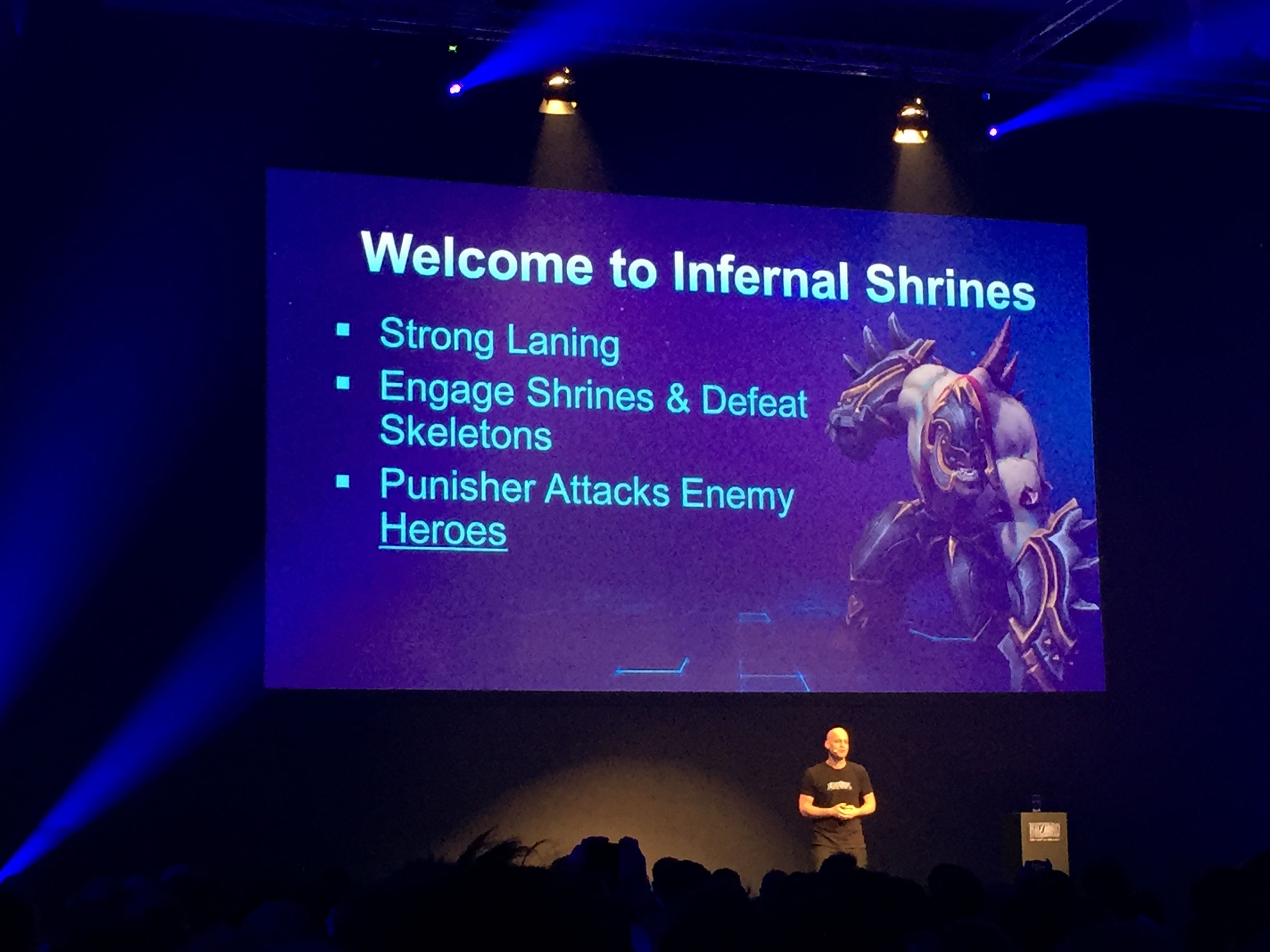 Wat er wel aan zit te komen binnenkort is een nieuwe map, wederom in de Diablo stijl. Deze mao heet Infernal Shrines. Dit een een sterke laning map waarbij heroes een shrine moeten bevechten. Uit deze shrine komen skeletons en welk team er als eerste 30 heeft verslagen krijgt een hele boze Punisher als ally. Een soort baas dus, maar deze keer eentje die eens niet de basis aanvalt van je vijanden maar de vijanden zelf! En dat is eens een leuke verandering zeg. Deze punisher heeft een random element bij zich die verschillend uitpakken, vuur bijvoorbeeld zorgt er voor dat de Punisher springt naar vijanden en zo zijn er meer diverse mogelijkheden, dat ligt helemaal aan het type Punisher je krijgt.