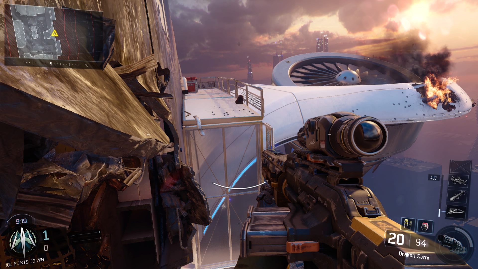 De publieks lieveling en een van de eerste uitgelekte maps. Voor de trouwe fans is deze map meteen bekend. Het is namelijk de remake van het “luxe jacht map” HIJACKED. Maar in plaats van op het water, in een wat luxer bootje hebben ditmaal gekozen voor een futuristisch airship( aldus de naam). Treyarch heeft eigenlijk weinig moeite gedaan om de map te veranderen. Zodra je begint met spelen voelt het ook als HIJACKED alleen dan in een ander thema. De map is smal en lang waardoor je elkaar redelijk head-on aanvalt. Maar net als zijn voorganger is het wederom opgedeeld in lagen en is het dus mogelijk om alsnog van uit meerdere hoeken elkaar op te zoeken. Groot verbeterpunt in deze versie t.o.v. zijn voorganger is dat je nu ook aan de zijkant van het schip kant wallrunnen waardoor je net wat meer mogelijkheid hebt om je tegenstander te verassen.