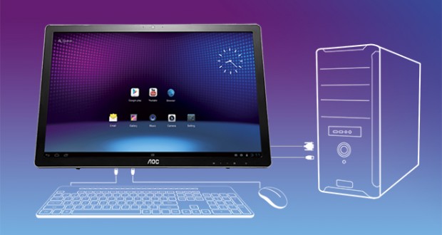 >Na de HP Slate21 hebben we wederom een slimme all-in-one op basis van Android gevonden. Toch zijn er grote verschillen. AOC gebruikt een krachtiger chipset van Nvidia (Tegra 3) en je kunt hem nog steeds als Full HD monitor voor je PC of laptop gebruiken.