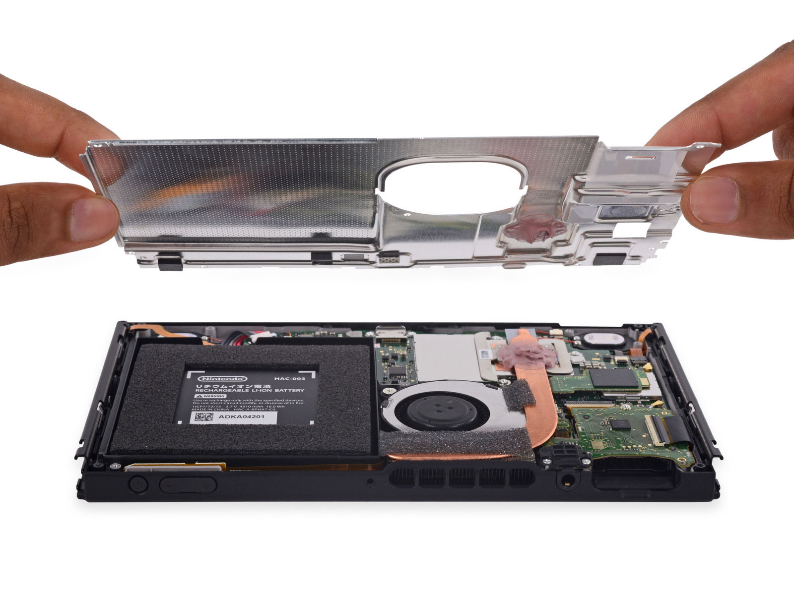 En nu tijd voor de tech. We kropen al eens onder de huid van de Joy Con controllers en doen nu we met behulp van iFixit hetzelfde voor de Nintendo Switch. Wat verrassend is, is dat Nintendo een hele andere werkwijze hanteert dan andere makers van tablets. Inderdaad. We scheren Nintendo hier even over één kam. Dat mag, want Nintendo maakt gebruik van een Nvidia Tegra chipset die Nvidia heeft ontworpen op basis van de kennis die is opgedaan met haar Shield tablets. Daarnaast leent het besturingssysteem delen van Android. Dus ja, de Switch is voor ons een bijzondere tablet.