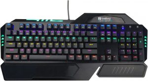 Een kernmerk van een gaming bord is de RGB ondersteuning. Een circus van LED verlichting die je op allerlei wijze kan laten terugkomen. Je kunt kiezen om toetsen onafhankelijk te laten kleuren, gloeien, oplichten bij gebruik of een speciaal patroon geven. Je kunt een neon achtergrondlicht aanzetten, alles laten ademen en noem maar op. Maar ook, gewoon alles uitzetten (voor kantoor dus). Het toetsenbord is gebouwd op een zware metalen plaat en heeft 104 mechanische toetsen die zorgen voor volledige nauwkeurigheid en extreme duurzaamheid! De Sandberg Hailstorm Mech Nordic is 52 mm lang, 5 mm hoog en 22,5 mm breed. Het bord weegt 1,5 kg. Het toetsenbord is voorzien van een met rubber beklede polssteun die je polsen beschermen tijdens het gamen.