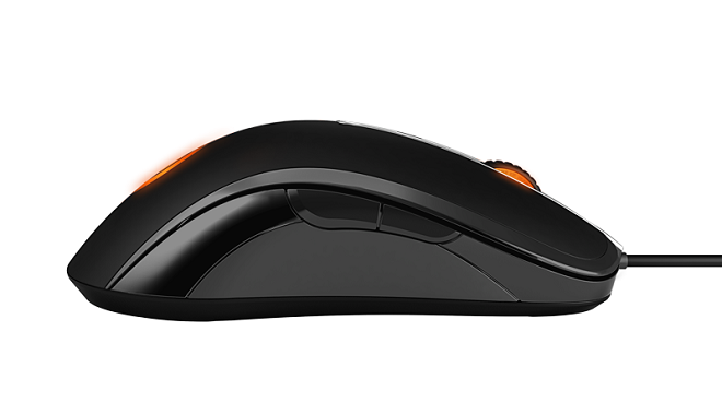 Kijkend naar het design, zien we al gauw dat op dat gebied geen inspiratie ontbreekt bij SteelSeries. Er worden geen futuristische vormen gebruikt maar een redelijk basic design waarbij ook de leek dit voorwerp direct als een muis zal herkennen! SteelSeries is hier naar mijn mening groot in, een basic design met toch een vette look die “gamer” uitstraalt. De muis is volledig zwart met een zilveren streep bovenop de muis waar onder andere de scroll wheel en een extra muisknop zich bevinden. Achterop de muis vinden we een met LED verlicht SteelSeries logo en ook de zijdes van de scroll wheel zijn met LED verlicht De muis is voorzien van een rubberen soft-touch laag welke comfort biedt tijdens het gebruik, ook na wekenlang intensief gebruik is deze laag nog steeds aanwezig!