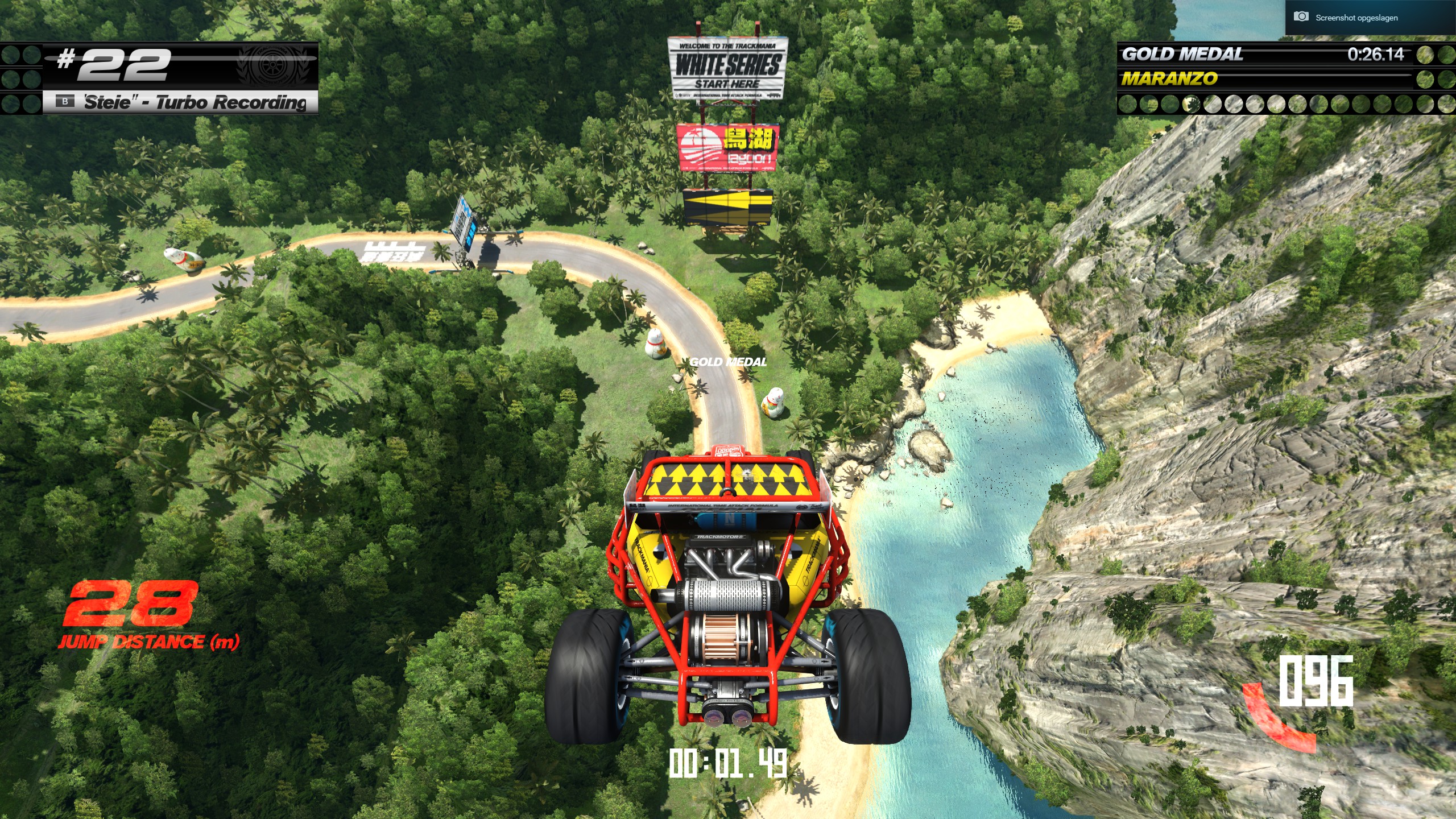 Hoe verder je in de series komt, hoe lastiger de races en dus groter de uitdaging wordt. De gouden medaille is de target, maar daar houdt het niet op. Je kan ook ‘trackmaster’ worden van een bepaalde track, en verdiend daarbij een mooie groene medaille. Dit houdt eigenlijk gewoon in dat je de snelste tijden van de developers hebt verslagen, althans dit was het geval in de vorige games.